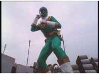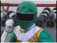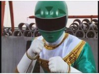Adam calls for Zeo Ranger 4, Green, as said color energy flashes about, a green grid overlaying on his body. The rising energy covers him completely, becoming the Green Zeo Ranger, visor and costume circuits shimmering with power. |