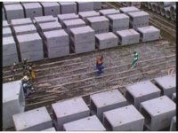 Pan over from Prince Sprocket, to Punch-a-Bunch entering through cement construction ring, patting gloves together. |