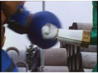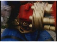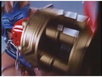 Close-up on one of Red Battlezord's fist pistons pumping in and out, releasing steam. |