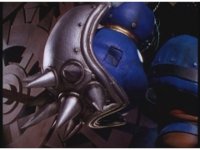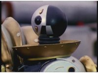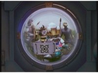 Pair of Cogs come in, carrying control device with Orbus atop it, setting it down before Klank and Prince Sprocket. |