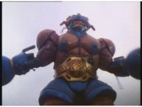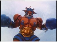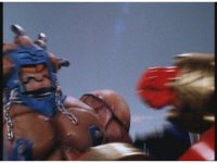 Punch-a-Bunch continues hitting Red Battlezord, until the chains and posts of the ring dematerialize around them. Zoom in on the confused monster. |