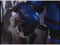 Closer zoom in on flashing, shaking Red Battlezord cockpit, Red still struggling. |