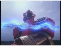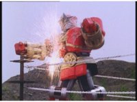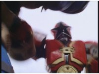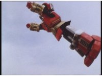 New shot of Red Battlezord spinning while shooting through the sky. |