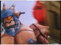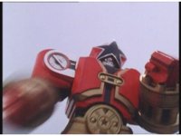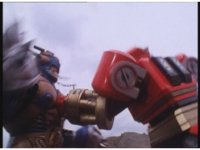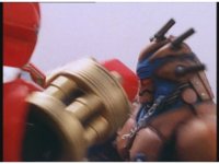Red Battlezord and Punch-a-Bunch box, this time the former knocks the latter down. |