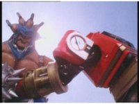 Red Battlezord beats on Punch-a-Bunch like Ralphie on Scut Farkus. |