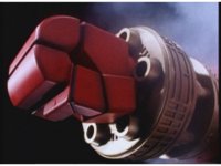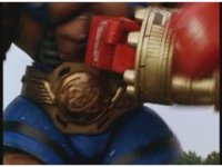 Close-up, semi-side angle, on Red Battlezord's right fist pistoning in and out. |