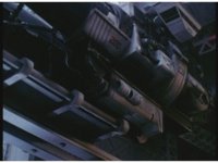 Close, side angle, on Red Battlezord's fists pistoning in and out while unleashing golden laser bolts from its gauntlets. |
