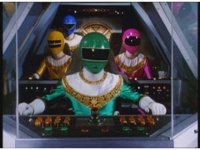 Close on Red Zeo Ranger nod-talking, zoom out to reveal he's in the front seat of the crowded Zeo Megazord cockpit, his four teammates behind him all motioning their right hands up into the air at once. |