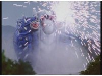 Autochthon & Zeo Megazord break off, then fight, sparkily striking each other, the monster getting in more blows. |