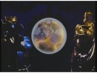 Zoom out as Red Battlezord & Zeo Megazord react to what they both see. |