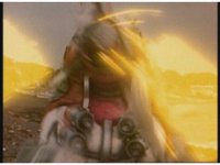 Red Battlezord twirls rapidly toward us while energy flames are drawn right into it. |