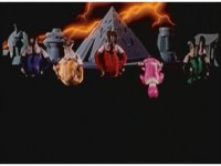 Track around to the left, as Zeozord Five passes over Zeozords One & Two, causing their Battle Helmets to slide forth off of their now-stationary forms. |