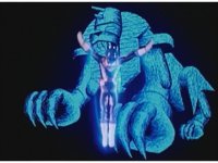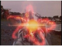 Reddish streaks of energy slam repeatedly into Mace Face, releasing yellow light with each strike, zoom out as monster curls up and warps into ball mode again. |