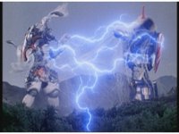 Autochthon & Zeo Megazord clash, getting in a brief lock against one another. |