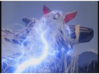 Through its silly string connection, Autochthon releases bluish electricity into Zeo Megazord. |