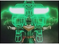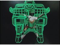 Adam calls for Zeo Ranger 4, Green, as said color energy flashes about, a green grid overlaying on his body. The rising energy covers him completely, becoming the Green Zeo Ranger, visor and costume circuits shimmering with power. |