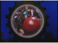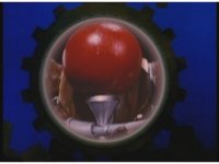 In Machine Empire Skybase video screen, Wrecking Ball tries and fails repeatedly to toss his big red ball into the cup on his silver spiked hand. |