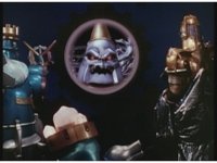 Continued, King Mondo, Prince Sprocket, and Queen Machina watch close-up of Wrecking Ball's face turning to silver with an evil expression, on the viewscreen. |