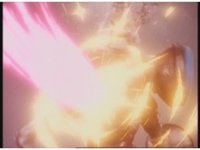 Reddish streaks of energy slam repeatedly into Wrecking Ball, releasing yellow light with each strike, until the monster, crackling with yellow electricity, falls over and explodes massively. |