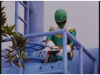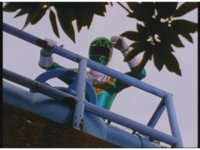 Adam calls for Zeo Ranger 4, Green, as said color energy flashes about, a green grid overlaying on his body. The rising energy covers him completely, becoming the Green Zeo Ranger, visor and costume circuits shimmering with power. |