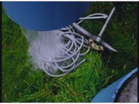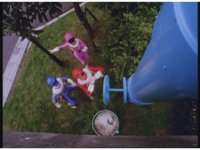 With the water pouring out of pipe comes the rope coil & pickaxe, but no monster, prompting the three Rangers to glance about. |
