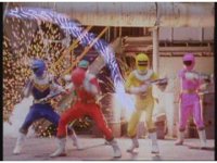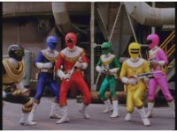 Upward angle on the five Rangers firing their Zeo Laser Pistols randomly around us. |
