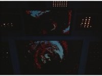 Twin pairs of viewscreen show the swirling dimensional cluster, presumably from the front and rear of Pyramidas. |
