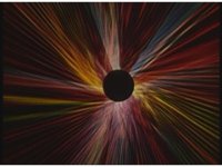 The swirling, multicolored dimensional vortex leads directly toward a black hole. |