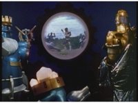 In Machine Empire Skybase video screen, the Rangers fight Cogs. |