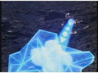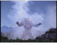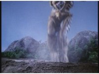 Zoom out, as Orbus hovers above Borax, and releases a bluish energy beam from his chest plate, causing the monster to stand up, glowing blue. |