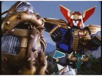Track around to the left, as Zeozord Five passes over Zeozords One & Two, causing their Battle Helmets to slide forth off of their now-stationary forms. |
