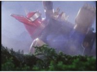 Track left around the front of Zeozord Three, as Zeozord Five shifts around behind it, revealing the Megazord head, connecting with steam releasing. |