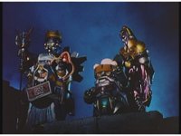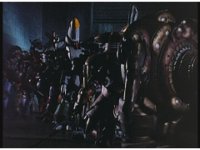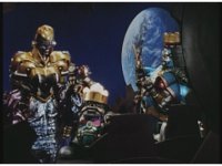 Pan right as, side by side, the five Super Zeozords step forth and stand ready. |