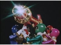 Against a black backdrop, the five Rangers reach up, as the Zeo Cannon materializes between their grasp, which they lower. |