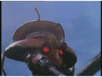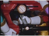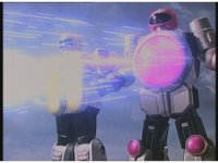 Super Zeozord Three pulls out its Super Zeo Laser Pistol, fires repeatedly into Hose Head, who explodes, finally releasing tentacles. |