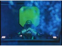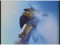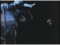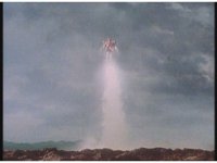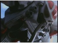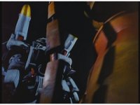 Close on Silo, in the air, turning and taking off with his back jet boosters. |