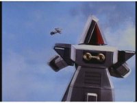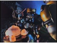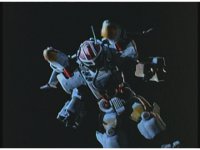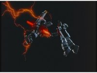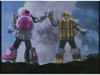 Pan right as Super Zeozords One & Two slowly beat on Mechanizer. |