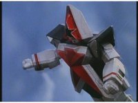 Visible through the visor, Red sits in cockpit, nod-talking from side to side. Zoom out as Super Zeozord Five is joined in flight by the other four. |