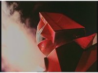 Things tint red as the action reaches the very upper atmosphere, Super Zeozord Five catches up to Silo, and begins to sparkily punch over at him. |