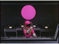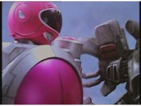 Kat calls for Zeo Ranger 1, Pink, as said color energy flashes about, a green grid overlaying on her body. Briefly, we cut to an outstretched arm morphing into a gloved Zeo Ranger hand. Cut back to Kat, as the rising energy covers her completely, becoming the Pink Zeo Ranger, visor and costume circuits shimmering with power. |