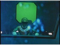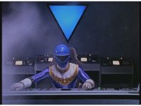 In his Super Zeozord cockpit, zoom in as Blue flicks a switch. |