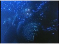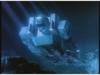 Super Zeozord Four swims forth, deep underwater, just above the bottom. |