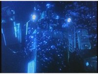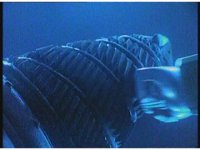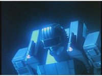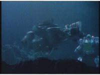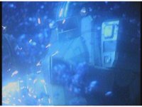 Close zoom in on Super Zeozord Four, passing to our left underwater. |
