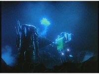 Prior scene of Zords shooting monsters is cut. |