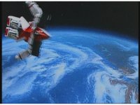 Super Zeozord Five chases Silo into space. |