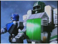 Super Zeozords rush up, stop, Five turns to Three & Two, they head to our left, then turns to One & Four, they head to our right, leaving Five posing there. |