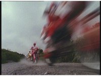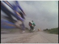 Energy rings crash down right in front of Rangers on their Cycles, sending them flying off their bikes. |