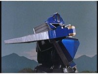 Super Zeozord Three flies forth at us, as blue beam streaks into its head. |