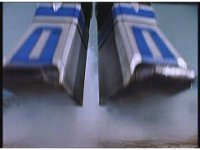 The five Super Zeozords are fired skyward from the hangar cannon. |