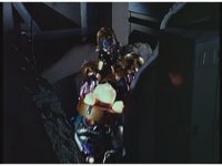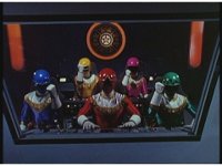In Super Zeo Megazord cockpit, the Rangers nod. Red nod-talks, raises a fist, the team responds in kind and begin to work the controls. |
